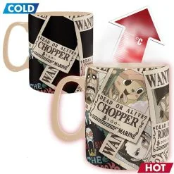 One Piece Mug Thermo-réactif Wanted. Mug magique One Piece, contenance : 460 ml. Versez votre boisson chaude dans ce mug et faite apparaître les avis de recherche de l’équipage de Luffy au chapeau de paille.